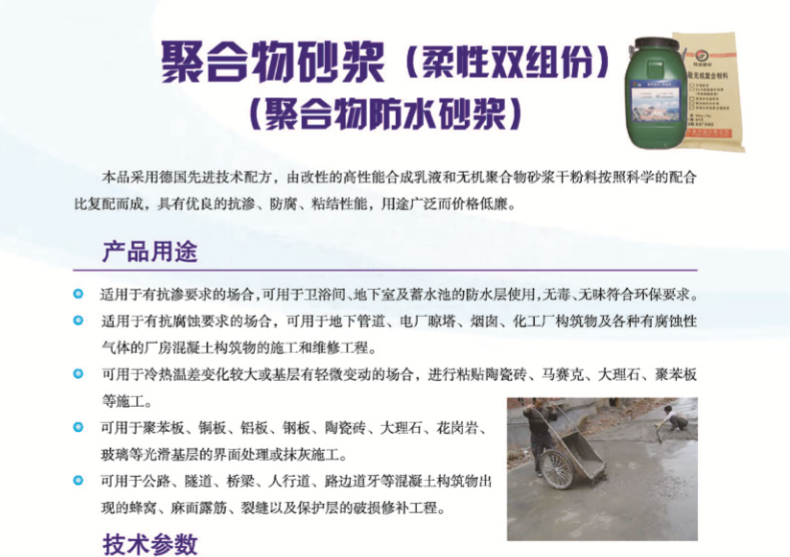 您的位置:首页 > 产品展示 > 粘结及抹面砂浆系列 > 聚合物砂浆(双组份)
