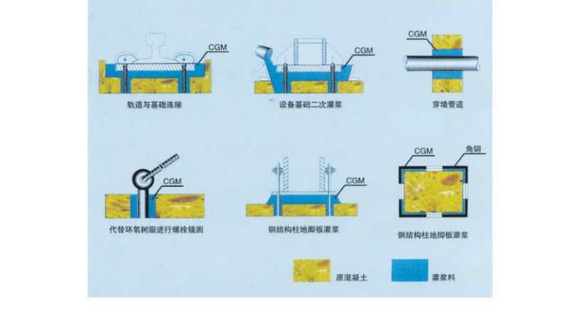 CGM超早强加固型灌浆料是一种水泥基自流型微膨胀干粉砂浆,具有早强、高强、自流动和微膨胀等特性,适用于设备基础的二次灌浆、混凝土结构的加固改造、钢筋和地脚螺栓的锚固等工程。